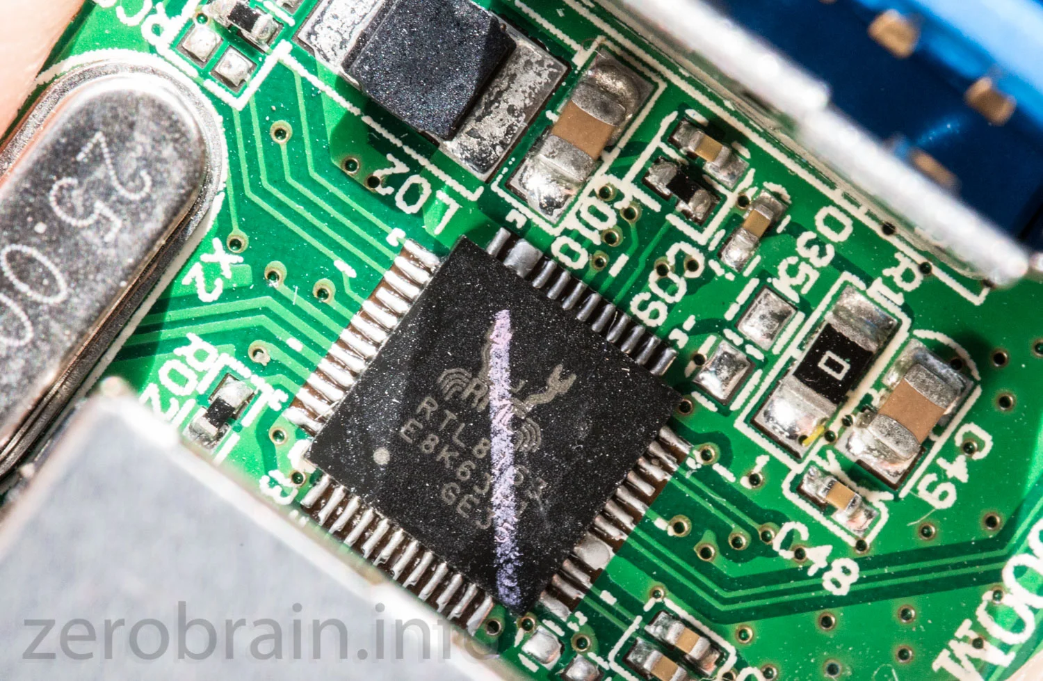 Es kam, wie es kommen musste. Im Inneren begrüßt mich ein alter Bekannter, der VL812 als "4-fach USB 3 Hub" Chip. Und genau wie erwartet verbindet sich dieser mit einem Realtek RTL8153 Ethernet Adapter. Vielmehr erscheint hier auch nicht erwähnenswert.
